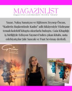 Yazar, nakış sanatçısı ve eğitmen Zeynep Özcan, “Kaderin Başkentinde Kadın” adlı hikâyesiyle Yüzleşme temalı kolektif kitapta yer aldı. Gaia Kitaplığı iş birliğiyle hazırlanan ve Edisyon Kitap’tan çıkan eser, kadın dayanışmasını ve toplumsal yüzleşmeyi merkezine alıyor.